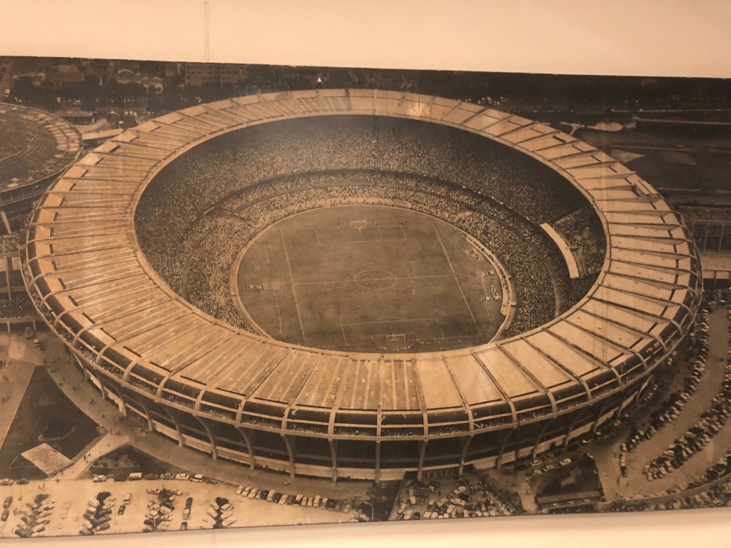 Après la guerre, le Brésil se positionne pour l’organisation de la Coupe du monde 1950. Grâce à la campgane médiatique de Mário Filho, journaliste fondamental dans le développement du football et du carnaval, le Brésil construit à Rio de Janeiro le Maracanã, plus grand stade du monde. Il peut accueillir 200 000 personnes, les riches dans « l’arquibancada », mais aussi les pauvres au sein de la « geral », un espace où les spectateurs restent debout. La visibilité sur la pelouse est mauvaise, mais la « geral » devient au cours des décennies un espace de vie et un spectacle à part dans le Maracanã. Malgré le leadership de Zizinho et les buts d’Ademir, qui, comme de nombreux coéquipiers, jouent au sein de l’historique « Expresso da Vitória » du Vasco, le Brésil s’incline en finale de la Coupe du monde contre l’Uruguay. Le match est connu sous le nom du « Maracanaço », qui sonne 200 000 personnes au stade et provoque une catastrophe nationale, comparée à Hiroshima par l’écrivain Nelson Rodrigues. Dans la défaite, le Brésil s’unit plus que jamais et le football devient l’un des piliers de son identité nationale.